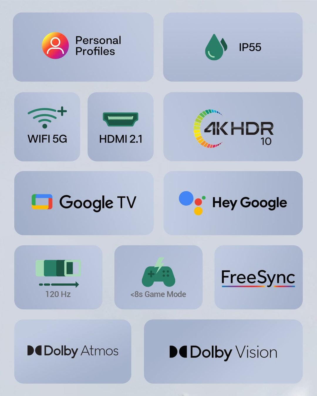 • Dolby Atmos Audio – Immersive, cinematic sound with weatherproof speakers.