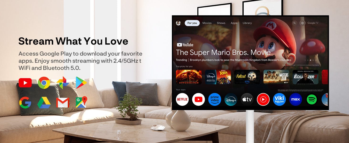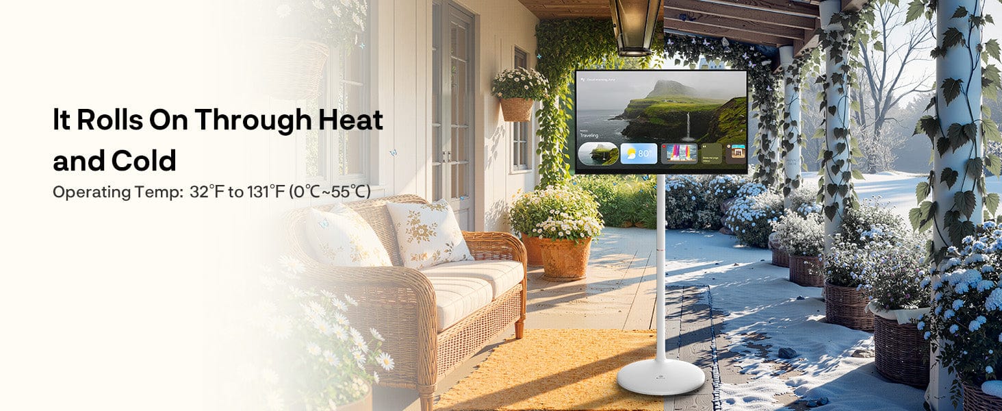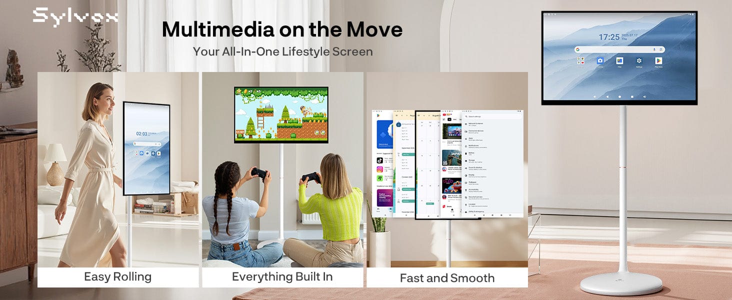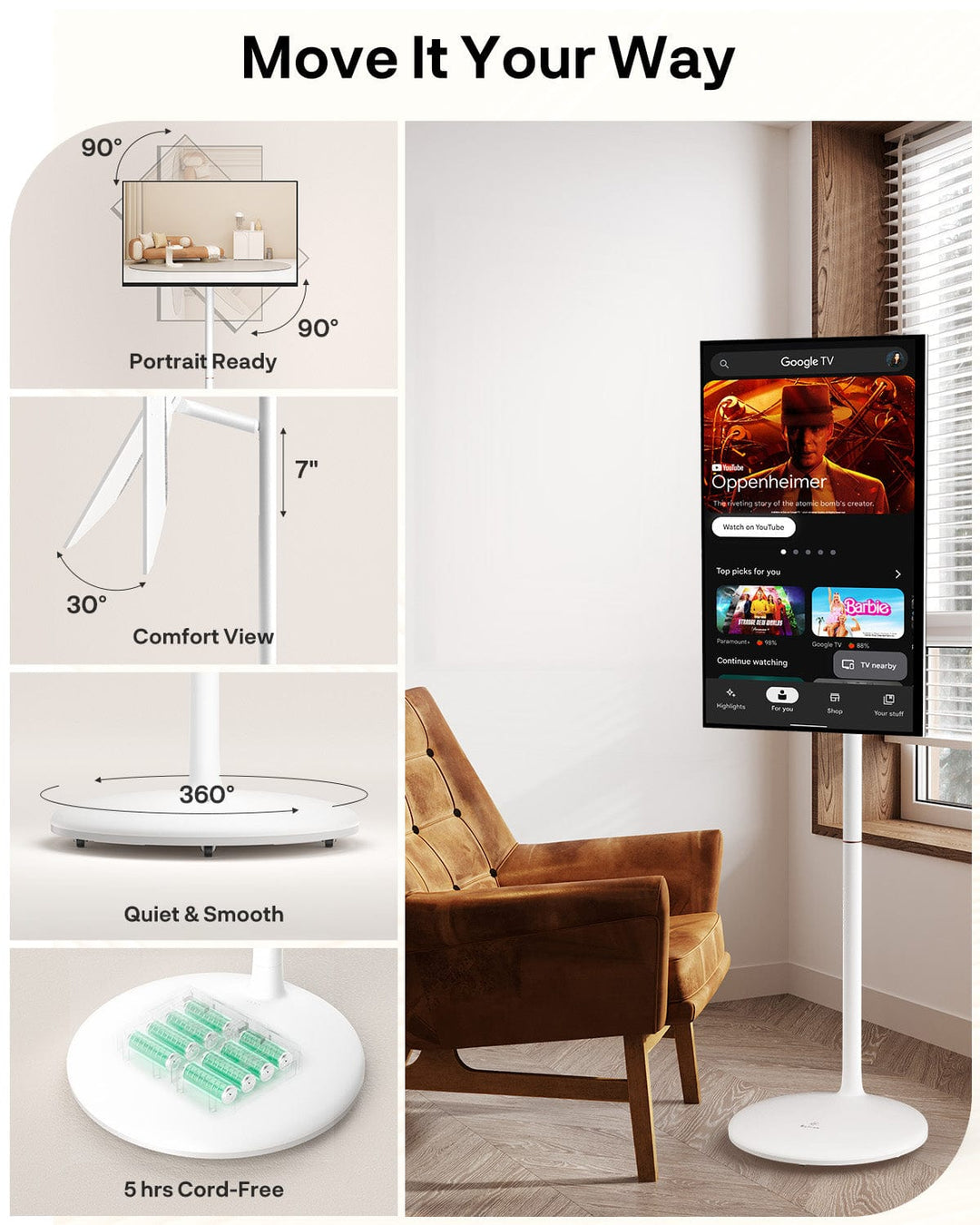 27" Portable Battery-Powered Smart TV on Wheels with Touchscreen (Rolling TV Series)