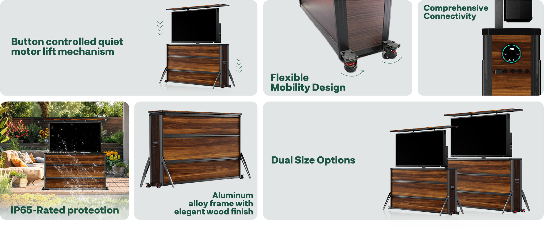 Effortless height adjustment at the touch of a button, ensuring perfect viewing angles with ease.