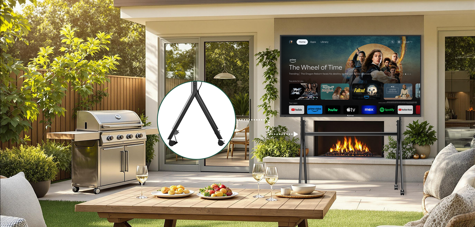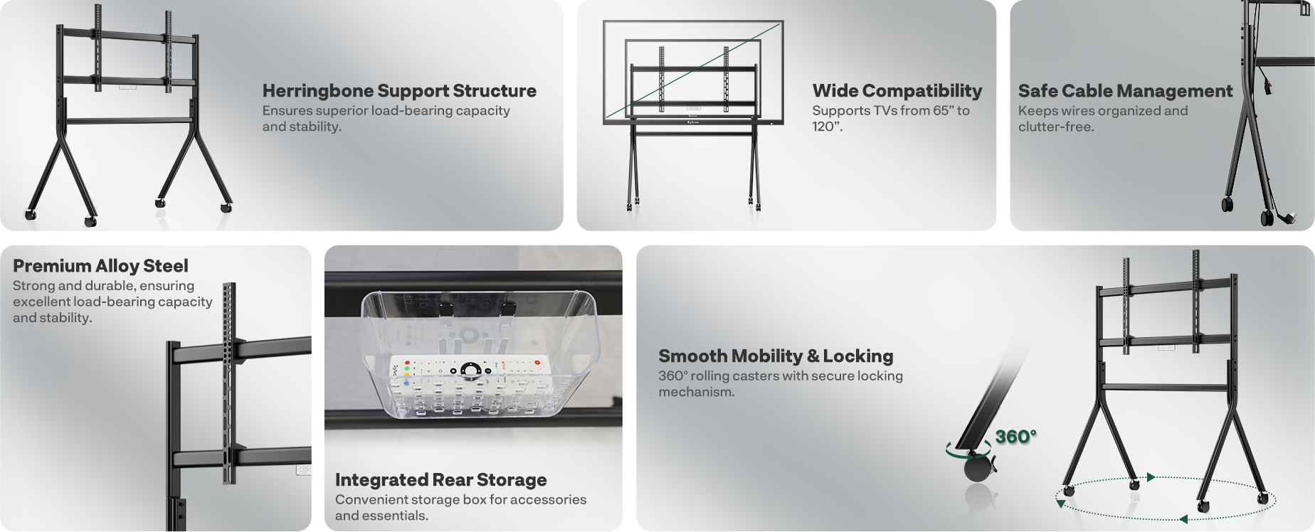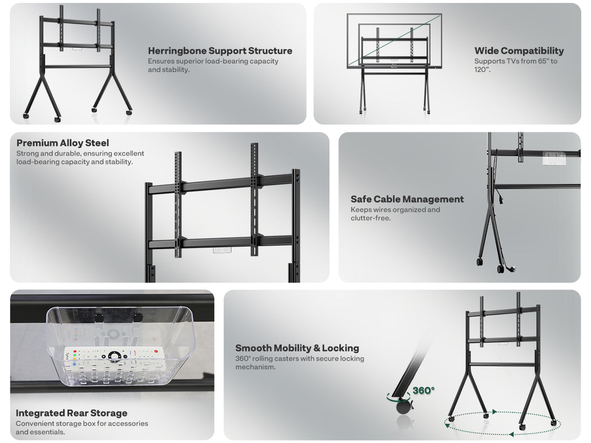 Sylvox Outdoor TV Y-Type Rolling Cart for 65" to 120" TVs